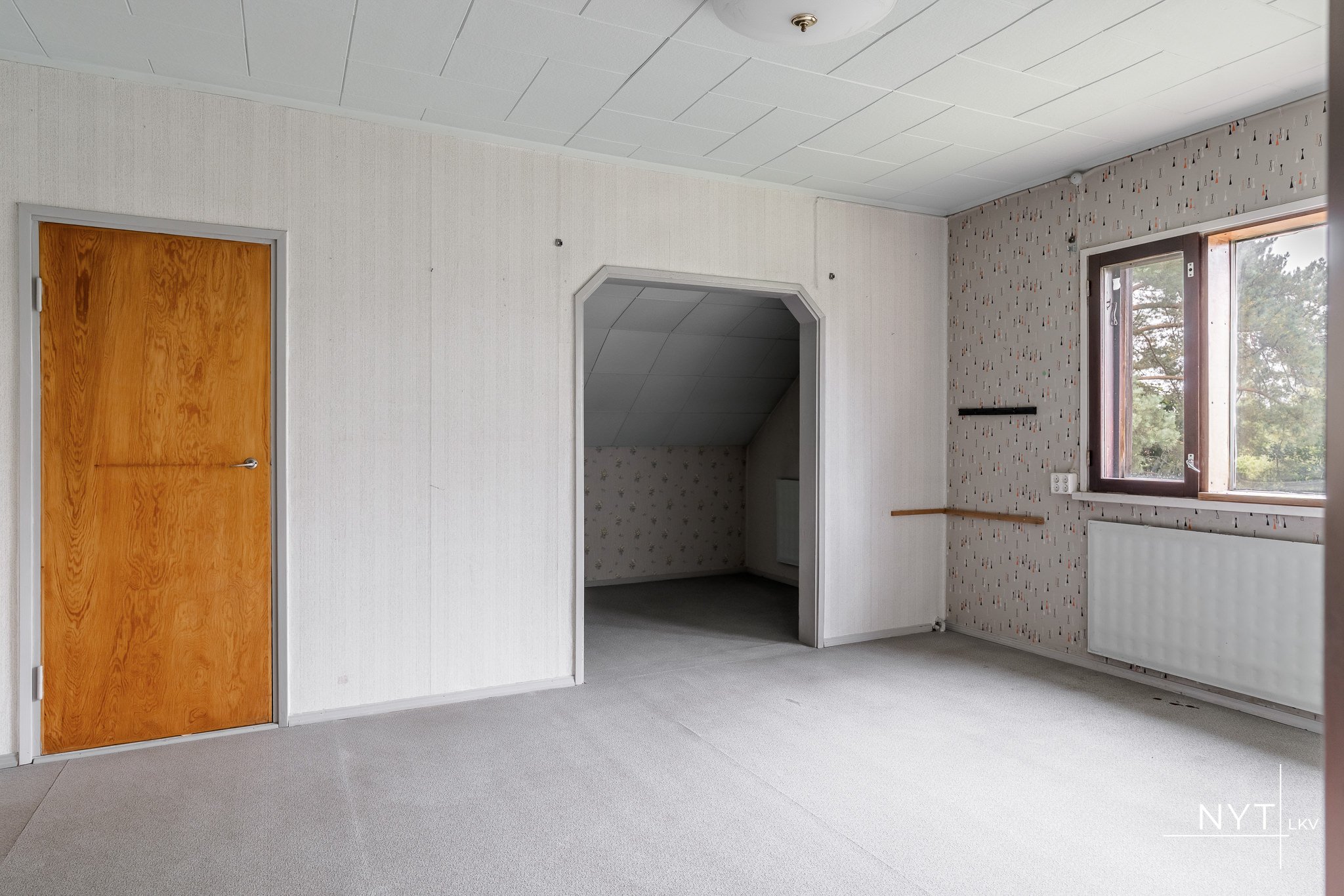 Yläkerrassa kaksi makuuhuonetta.