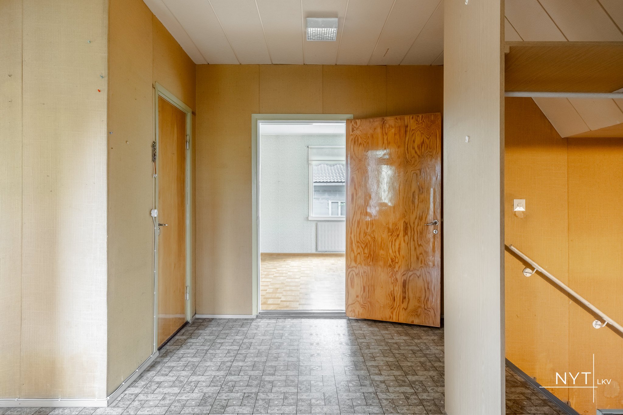 Rakennus muodostuu kolmesta kerroksesta. Keskikerros sisältää aulan, kaksi huonetta, keittiön ja talon toisen vessan. Keskikerroksen huoneet ovat valoisia kulmahuoneita ja soveltuvat hienosti esimerkiksi ruokahuoneeksi ja olohuoneeksi. Keittiö on tilava tupakeittiö, johon mahtuu myös ruokaryhmä. Remontin yhteydessä tehtävissä suurempiakin huonejärjestelyitä.