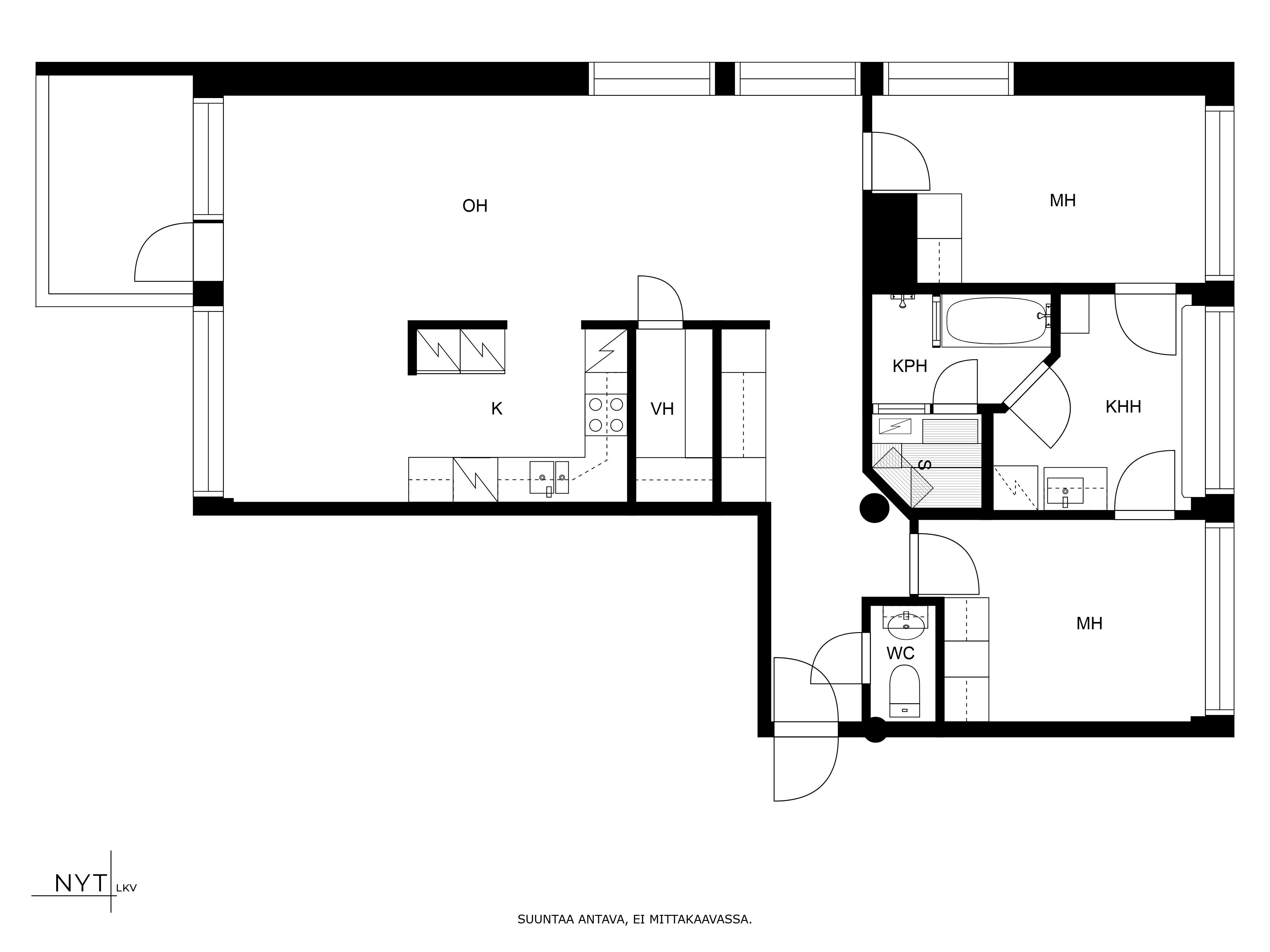 Ei tarkistusmitattu. Pinta-ala voi siis olla edellä mainittua pienempi tai suurempi.