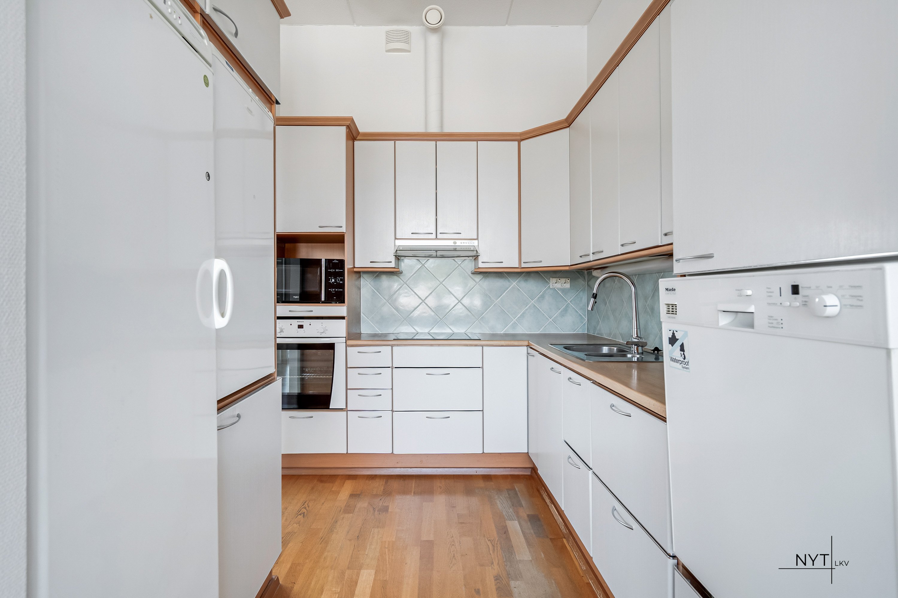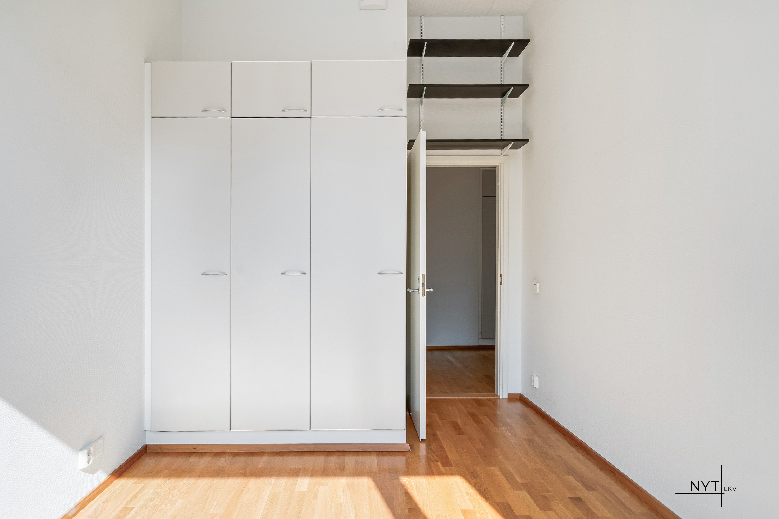 Asuntoon kuuluu erinomaiset säilytystilat, kuten makuuhuoneiden ja kodinhoitohuoneen kaapistot, vaatehuone ja yhtiön tiloista löytyvä häkkivarasto. Mahdollisuus vuokrata autopaikka sähköauton latausmahdollisuudella. Liikenneyhteydet ovat sujuvat, ja lähistöltä löytyy hyvät pyörätiet.