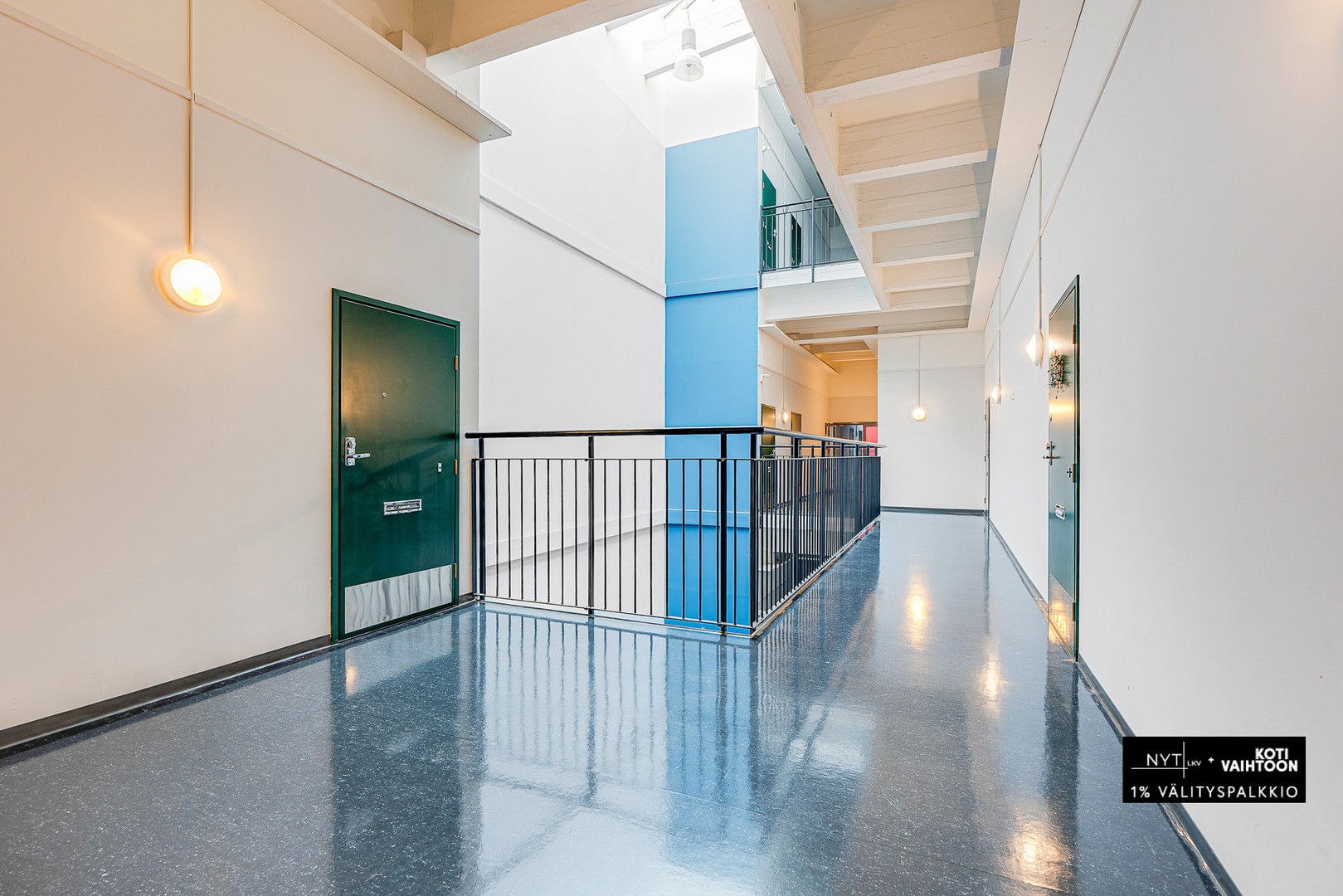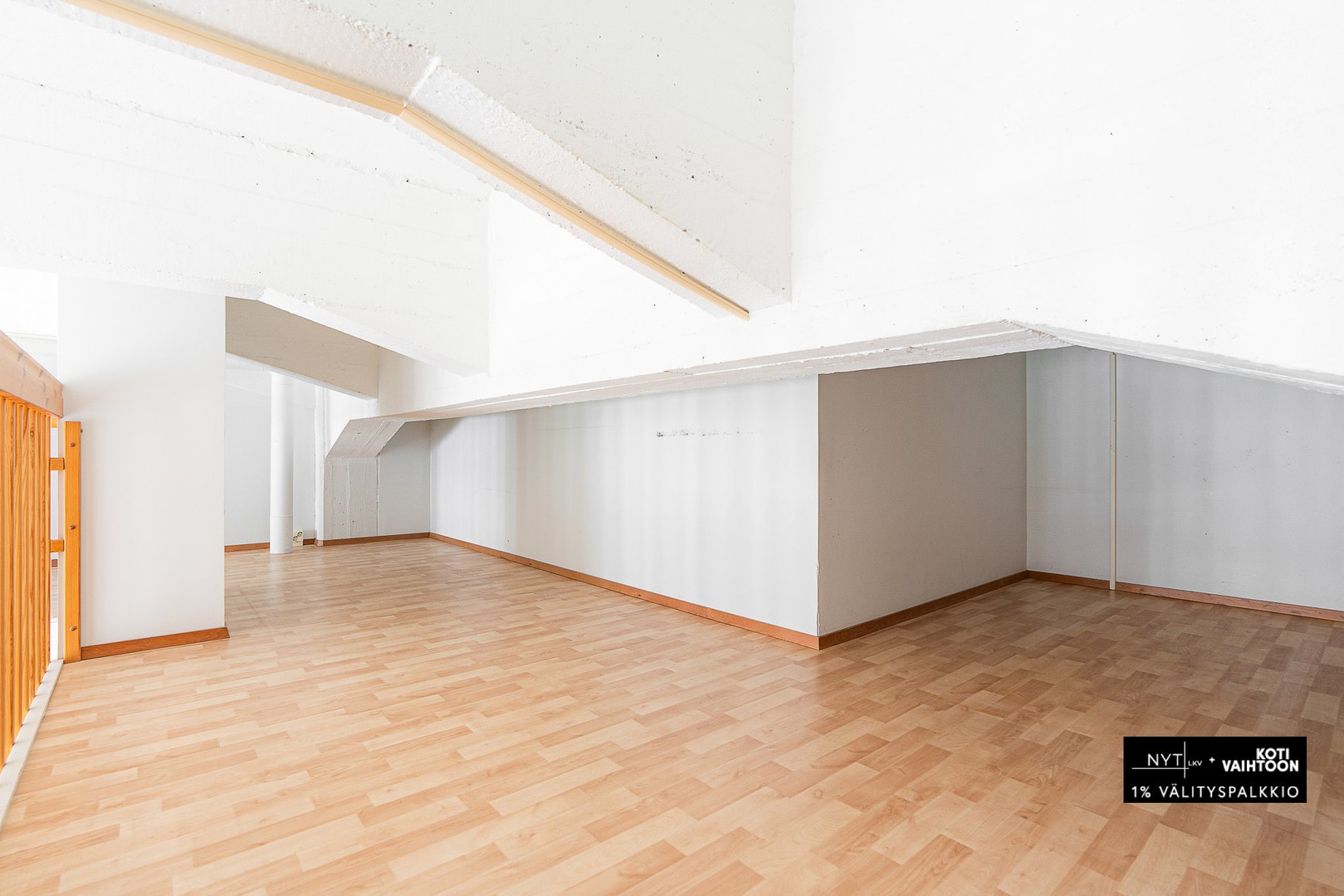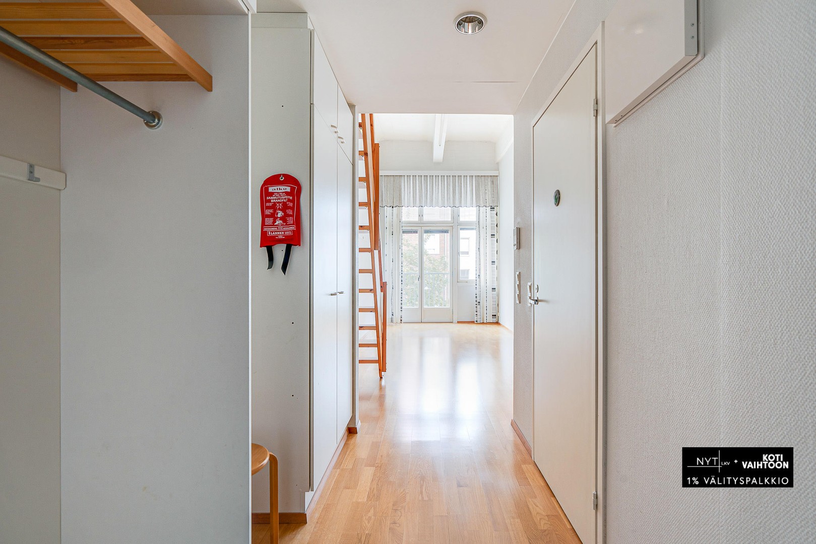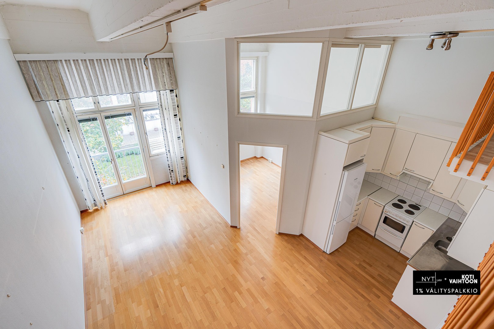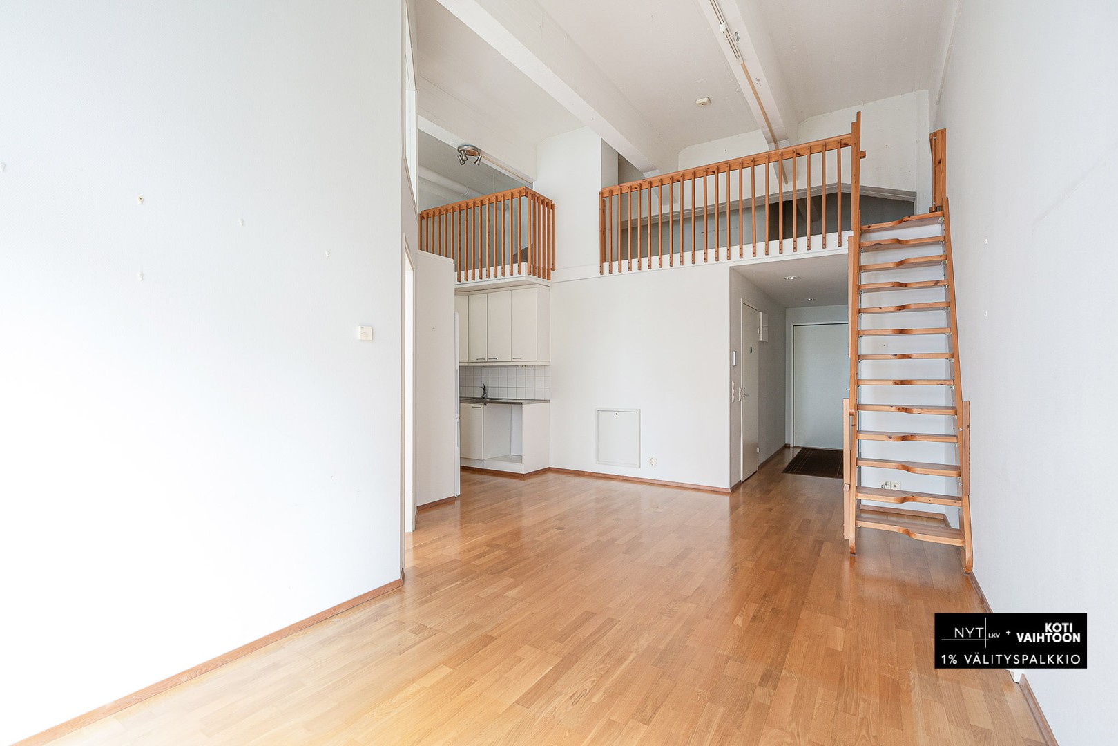 Kodin avarat, hulppealla huonekorkeudella olevat asuintilat muodostavat yhtenäisen kokonaisuuden. Makuuhuone on erotettu väliseinällä ja sisältää kiinteää säilytystilaa. Asunnossa on myös 12 neliön parvi, jossa on matalampi huonekorkeus, joka sopii hyvin makuuhuoneeksi tai työpisteeksi. Tilava kylpyhuone sisältää pyykkihuoltotilan ja oman saunan.
