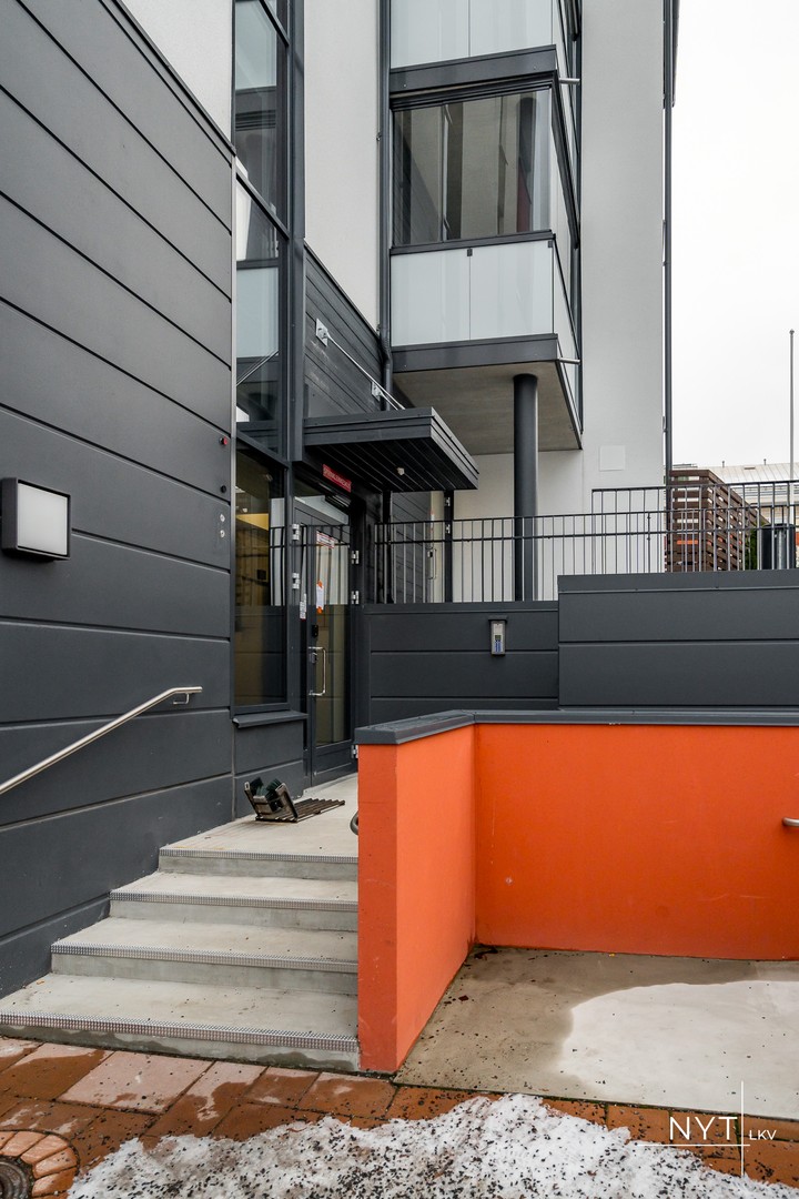 Rakennus valmistunut 2022. Esteetön pääovi asennettu 2023.