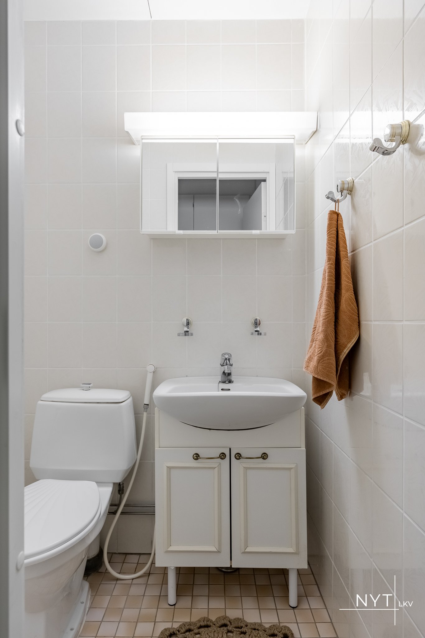 Tämä kaksio sijaitsee rakennuksen toisessa kerroksessa. Selkeä pohjaratkaisu tarjoilee hyvät säilytystilat, erillisen vessan ja tilavat huoneet.