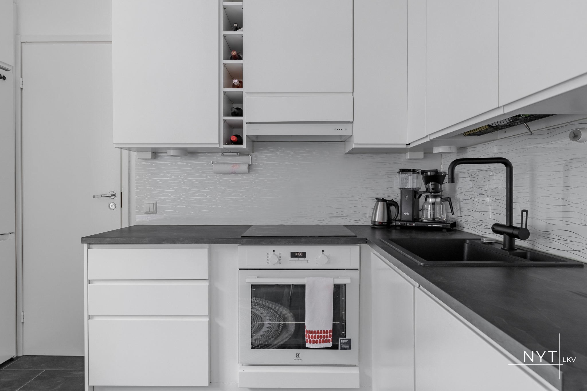 2021 uusittu, integroiduilla kodinkoneilla varusteltu keittiö.