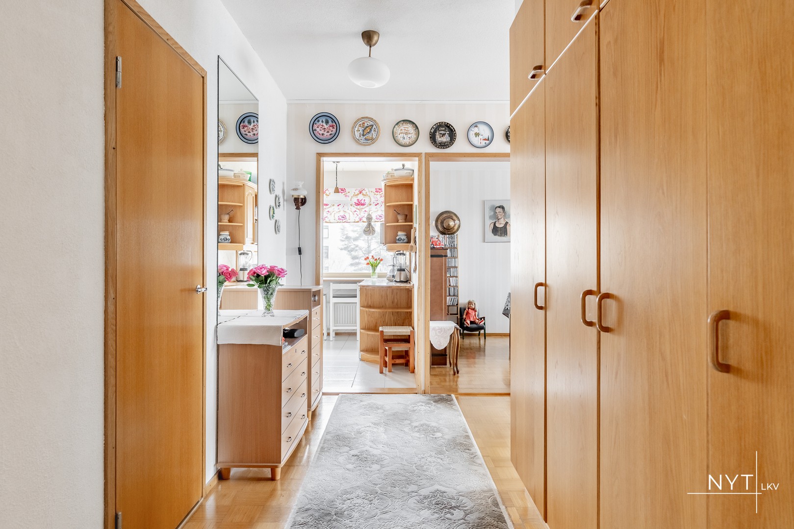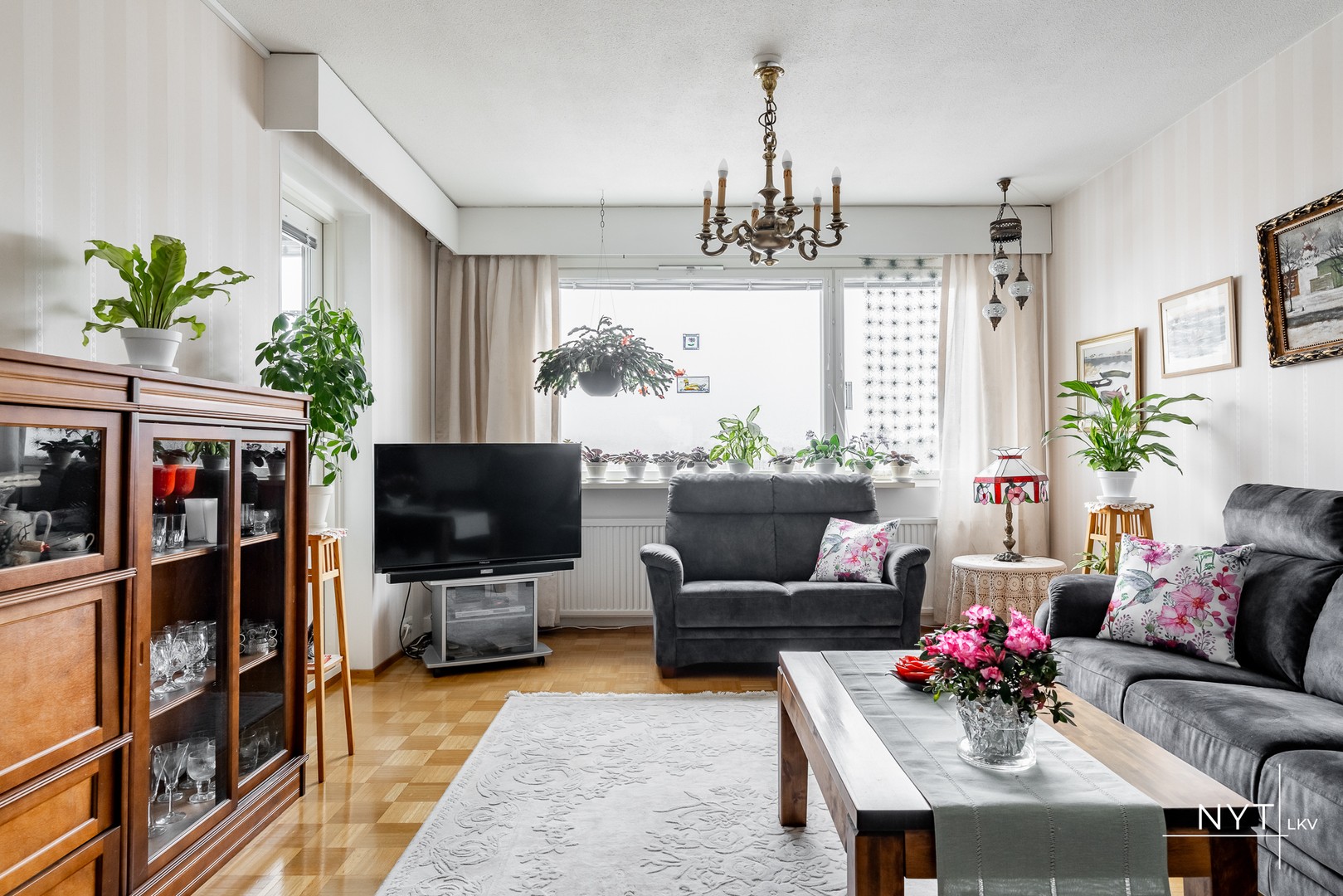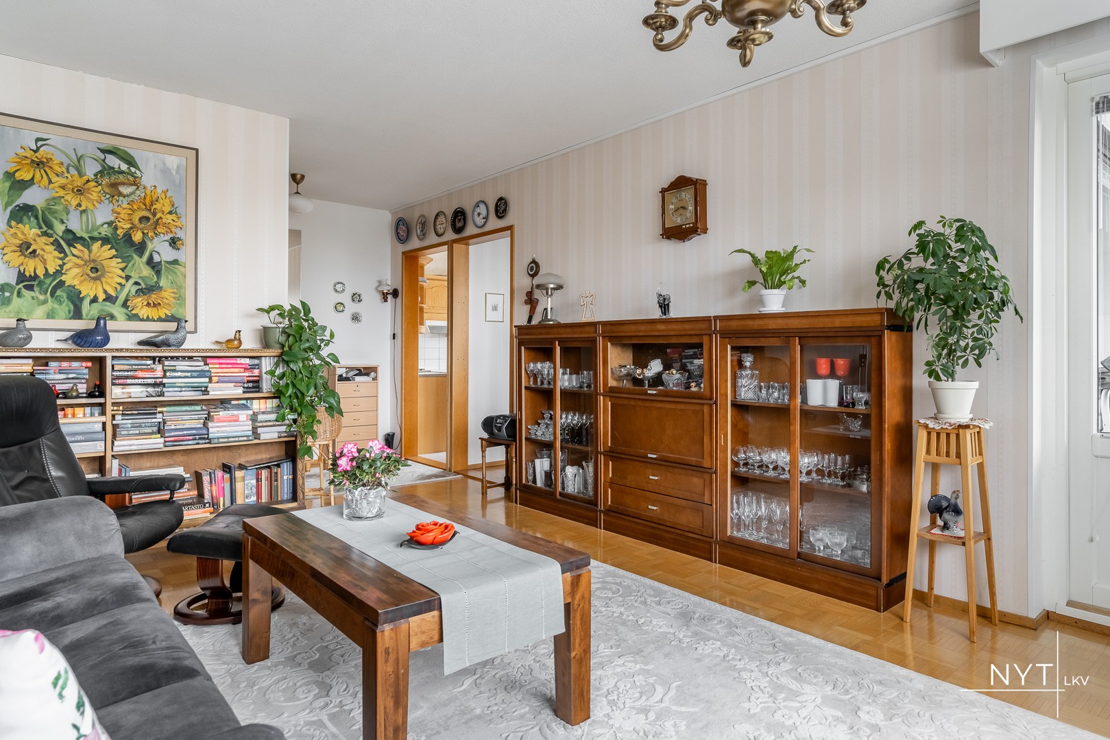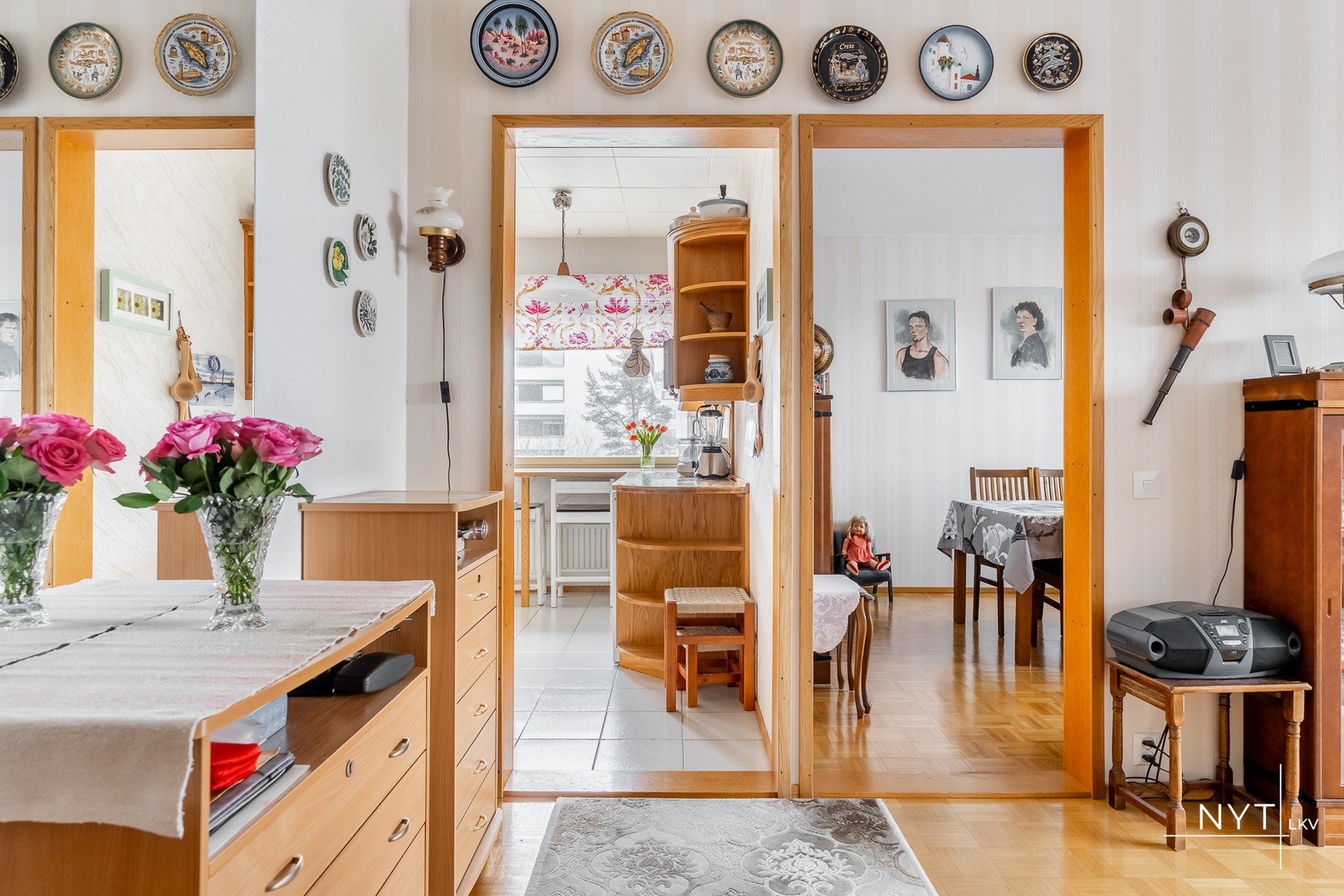 Kyseinen kohde on kolmen makuuhuoneen koti. Muita tiloja ovat tietysti keittiö, olohuone ja märkätilat. Asunnossa on myös lasitettu parveke, johon on kulku olohuoneesta. Märkätilat uusittu linjasaneerauksen yhteydessä.